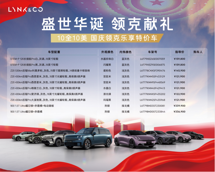 领克汽车推出“国庆十重礼”活动,涵盖到店礼、试驾礼、金融免息等多重福利,另有10台特价现车供应。