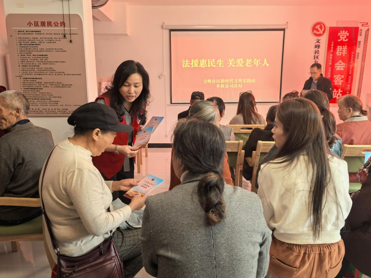 为切实维护老年人的合法权益,近日,冯川镇文峰社区新时代文明实践站联合奉新县司法局开展了“法援惠民生 关爱老年人”主题普法活动。活动现场,志愿者向老年人发放普法宣传手册,县司法局工作人员结合老年人的生活实际,运用通俗易懂的语言,围绕赡养、继承、防诈骗等老年人密切关注的法律问题展开讲解。通过真实案例剖析,让老人们能够直观地了解法律知识。工作人员还耐心解答老人们的法律疑惑,引导老年人学会运用法律武器维护自身合法权益。此次活动,将法律服务送到了老年人身边,增强了老年人的法律意识和维权能力,营造了关爱老年人、保障老年人合法权益的良好社区氛围。