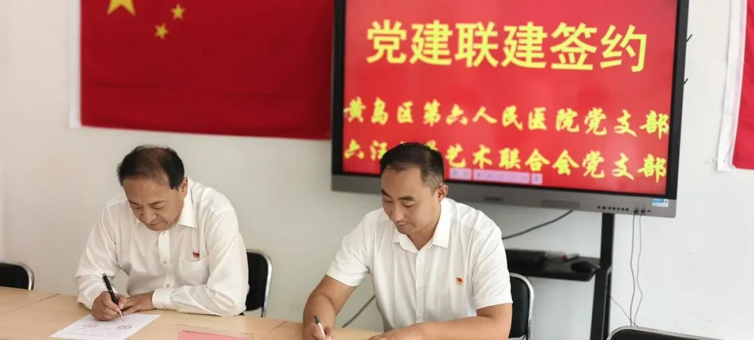 本网青岛讯(吕勇进 崔启昌 通讯员 陈玟含)为构建“资源共享、优势互补、协同发展”的党建工作新格局。9月29日,中共青岛西海岸新区第六人民医院支部委员会与中共六汪文学艺术联合会支部委员会举行党建联建签约仪式。六汪镇党委组织委员徐颂,区第六人民医院党支部书记、院长孙聚有,六汪镇党建办公室主任徐倪,六汪文联党支部相关领导及医院领导班子成员共同见证这一重要时刻。