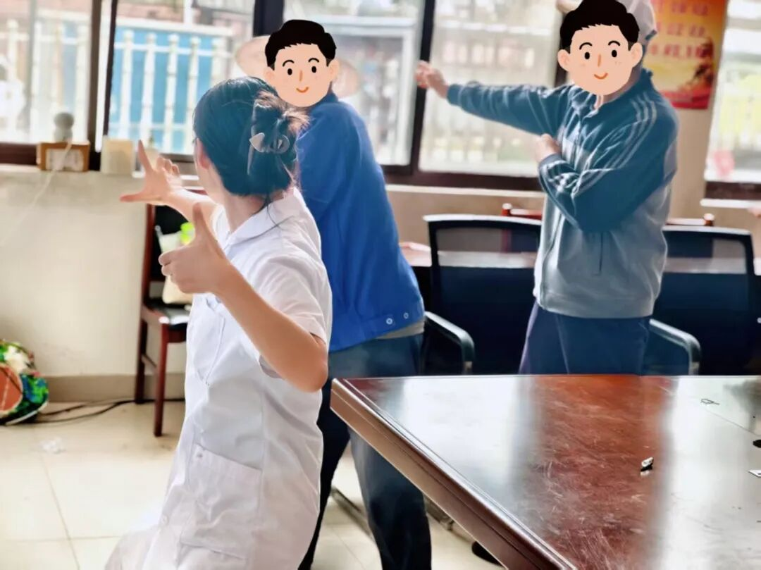 讲解结束后,教学环节正式开始。青岛市黄岛区第六人民医院医务人员化身“健身教练”,从“两手托天理三焦”到“左右开弓似射雕”,再到“调理脾胃须单举”,每一个动作,医务人员都分解成简单的步骤,手把手地指导老人们调整站姿、纠正手势和呼吸节奏。老人们热情高涨,跟着医务人员的口令认真模仿,虽然动作略显生涩,但眼神专注、态度认真,现场气氛轻松而热烈。