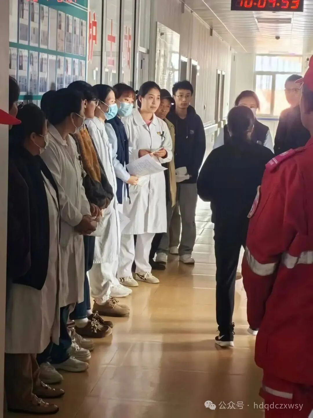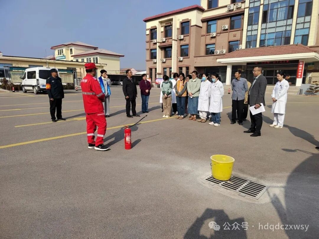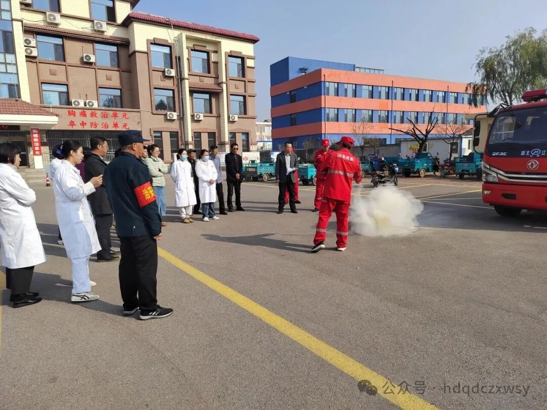 活动中,消防人员先讲解火灾预防、逃生技巧及灭火器使用知识,随后模拟火灾警报,组织医护人员、患者以湿毛巾捂口鼻、低姿前行的方式沿安全通道疏散,最后现场演示灭火器“提、拔、握、压”使用方法,并指导实操灭火。