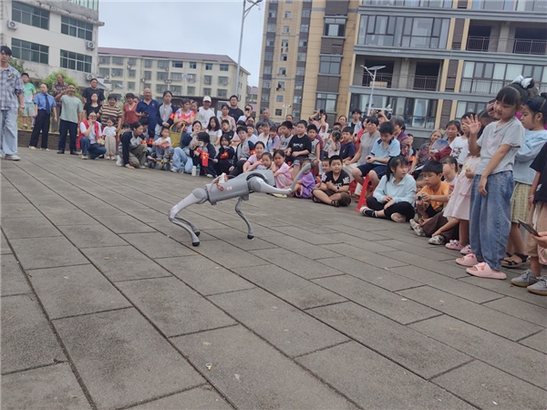 活动当天,从开场就充满惊喜。灵活的机械狗随着节奏舞动,酷炫的机器人与小朋友互动打招呼,瞬间点燃全场热情,不少孩子围在表演区,眼神里满是好奇与兴奋。