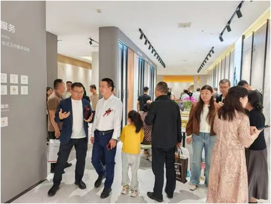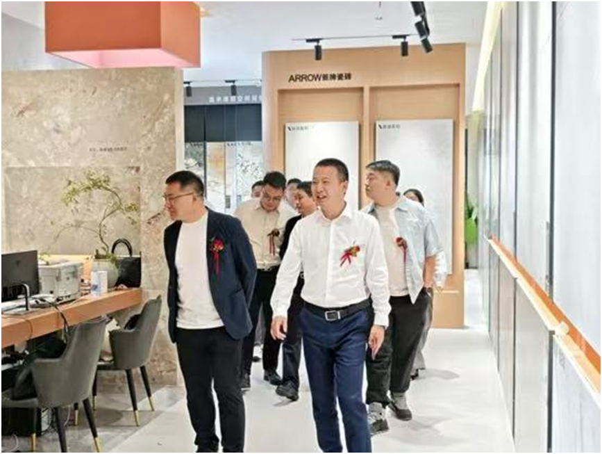 精彩的开业仪式后,嘉宾们和客户移步至箭牌瓷砖A6pro 旗舰展厅参观。整个展厅的设计以现代简约、国际自然为主要基调,融合了箭牌瓷砖的产品设计理念,通过实景样板间、互动体验区等,全方位展示箭牌瓷砖的多样应用场景。