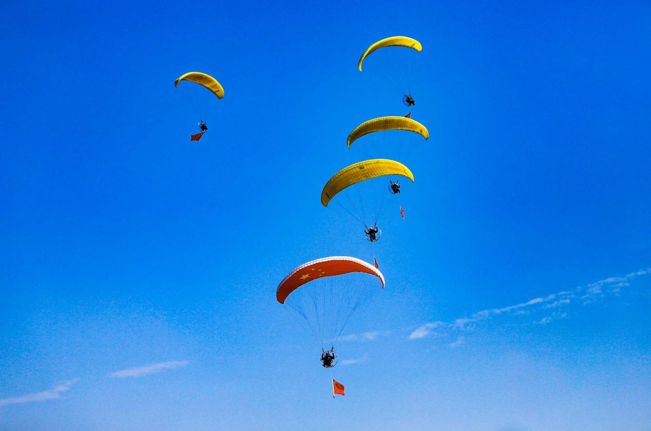 开幕式上,动力伞编队飞行、特技跳伞表演等航空体育表演,将现场气氛推向高潮。运动员们如雄鹰般翱翔,在空中划出优美轨迹,并以精准的定点着陆,完美诠释了这项运动“空中芭蕾”的魅力。“太震撼了!这真是技术与勇气的完美结合。”现场观众纷纷举起手机记录精彩瞬间,阵阵喝彩声响彻机场上空。