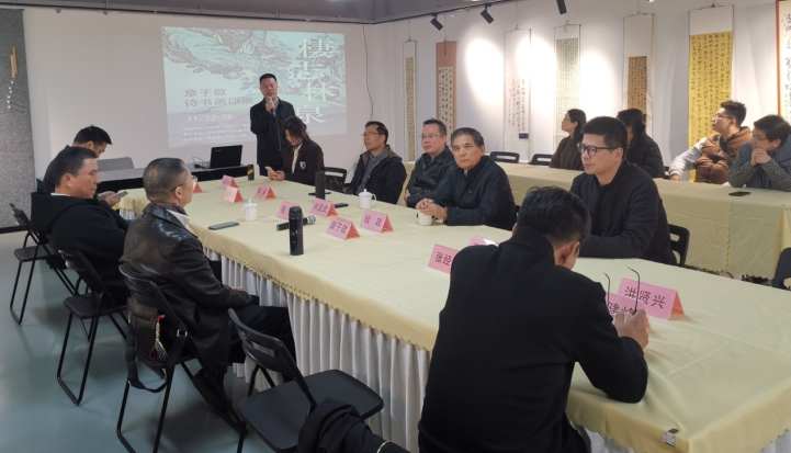 11月22日,荣宝斋宁波分店成功举办《栖志林泉——章子敬诗书画印展》。活动以座谈的形式,在热烈的氛围中拉开帷幕。荣宝斋宁波分店总经理洪贤兴主持座谈会。他在欢迎辞中向与会来宾致以诚挚问候,并一一介绍了到场的各界领导、嘉宾与艺术家。