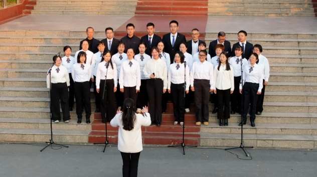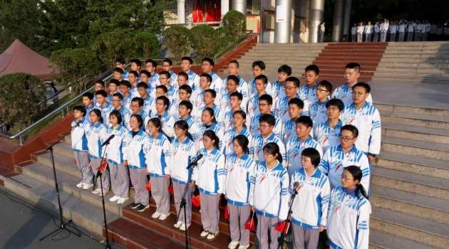 赛场上,学生们身着统一着装,队列整齐划一,一张张青春脸庞洋溢着昂扬朝气。伴随着激昂的旋律,同学们纵情高歌,歌声时而悠扬婉转,时而铿锵有力。《花自向阳开》的浅吟低唱,呼应着先辈不畏艰险的赤诚初心,诉说着新时代少年直面坎坷、心向暖阳的坚定信念;《茫茫人海里》的深情追问,让学子们读懂平凡中的担当,领悟到个人微光汇聚成民族复兴星河的磅礴力量;《风雨压不垮》的激昂吟唱,是少年们与祖国共荣辱、同进退的赤诚告白,既铭记民族过往的苦难辉煌,更立下守护盛世中华的铿锵誓言。红色记忆与时代浪潮在歌声中交织,勾勒出新时代青年独有的精神风貌。