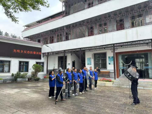 近日,光明乡以“筑牢国家安全防线”为主题,联合辖区派出所开展防恐防暴专项演练。乡应急小分队、村安保人员等参与,民警现场讲解防恐器材使用、人员疏散等技能,各方协同完成可疑人员拦截、群众转移等实战环节。此次演练既提升了突发暴恐事件应急处置能力,也强化了“国家安全,人人有责”的意识,筑牢基层安全防护网。