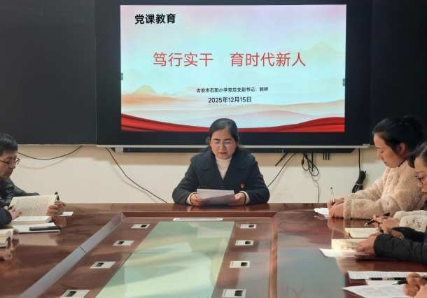 本网江西讯(王燕 包先琪 刘晓华)为强化党员教师责任担当,推动党建工作与教育教学深度融合,12月15日,江西吉安市石阳小学第一、第二党支部联合开展“笃行实干 育时代新人”主题党课教育活动。学校党总支副书记苏霞、郭婷分别围绕主题授课,全体党员教师参会学习。