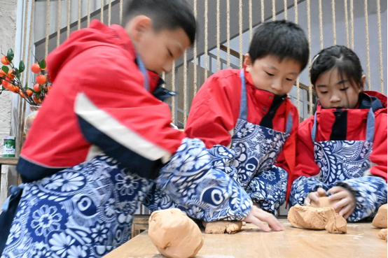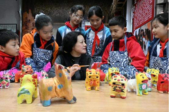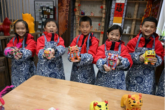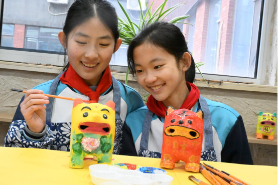 近年来,青岛市即墨区创智实验学校把地方“非遗”文化传承保护纳入第二课堂,通过组织“非遗”传承人、民间艺人走进校园传承技艺,同学们近距离感受“非遗”文化魅力,自觉学习传承相关技艺,让地方特色“非遗”文化放光彩。 即墨泥老虎,历史悠久,起源于明代万历初年,距今已有四百多年历史,是即墨最具特色的民间艺术品,是形、色、声、动俱佳的民间泥塑。这种工艺品以朴拙、雅俗、艳丽、大气,富有浓郁的地方气息,深受人们喜爱。 在山东省青岛市即墨区创智实验学校,“泥老虎”非遗传承“守”艺人于正寿给学生们讲解如何为“泥老虎”上色 一支画笔,勾勒出民间艺术的华章;一抷泥土,传承着历史文化的印迹。今年82岁的于正寿介绍,看似简单的泥老虎,从开始挖土到最后成品需经过十多道工序才能制作完成。包括:选泥、制模、磕坯、修坯、做哨、涂粉、上色、成品等。不仅对土、制成的坯有要求,对画的技术、颜色的选择都很讲究。彩绘更是泥塑的点睛之笔。拿着头部和尾部挤压后,泥老虎会发出响声。 山东省青岛市即墨区创智实验学校的学生在手揉用于制作“泥老虎”的泥胚 教室里,于正寿手把手教同学们做泥老虎,学生深入了解了即墨“泥老虎”的历史发展继承现状、材料选择、制作工艺等方面。古稀之年的于正寿看起来仍精神矍铄,他向师生们介绍了即墨“泥老虎”的基础知识,并现场向同学们演示如何制作、调配颜色。十分耐心地讲解、分步骤操作,让同学们观查实物,临摹学习。于正寿一双手一把“泥”,手下捏出的泥塑作品小老虎的神态活灵活现,他依靠手里的锉刀和花笔,将一团粘土刻画出的“小老虎”惟妙惟肖。看似不起眼的一团泥巴,在他的精心拍打、揉捏后变成了一件件颇具神采的艺术品。 山东省青岛市即墨区创智实验学校的学生在给“泥老虎”上色 学生们认真聆听观看着,眼神中闪烁着好奇与惊喜。“来,同学们,跟着爷爷学着做。”于正寿将提前准备好的泥坯分发给学生,并指导学生进行实践操作。孩子们拿着泥坯燃起了创作激情,通过细心观察、纷纷拿起手中的工具和材料有序地进行创作,他们手拿陶泥,跟着老师捏捏、搓搓、压压……时而小声交谈,时而向老师请教,现场气氛温馨而和谐。在这一揉一搓一捏间,不一会儿工夫,一件件拙朴、可爱的作品就出炉了。同学们相互展示着自己的作品,享受着成功的喜悦。 在山东省青岛市即墨区创智实验学校,美术老师给学生们讲解“泥老虎”的上色技艺 给“泥老虎”上彩是同学们们期盼已久的环节,于正寿手把手地把传统“泥老虎”的纹饰画法,悉数认真地传授给孩子们。泥老虎的制作,让学生们切身感受到中华传统文化的魅力,零距离的接触到非物质民间艺术,了解到传承文化的独特性。 “泥老虎”实验室里,处处看到孩子们忙碌的身影。浓艳的色彩一会儿功夫就让“泥老虎”披上了彩妆。泥老虎在同学们手中被彩绘得五颜六色,丰富多彩的传统文化课让学生们十分投入地进行体验。终于做出了一个个憨态可掬的泥“叫虎”,“咕咕”、“咕咕”的叫声伴随着孩子们的笑声,汇成了优美的校园童乐曲。 学生们把自己的作品捧在掌心,爱不释手,脸上满是喜悦。虎”与“福”谐音,寓意镇宅、驱除邪鬼,泥老虎也代表吉祥平安,有着很好的寓意。记者在拍照时,于正寿拿起一只泥老虎,双手捏住泥老虎的头和尾拉动推压,泥老虎立即发出咕咕的声音。“老虎的外型由三部分组成,头和尾部用泥制成,中间用桑皮纸作为身体将头尾相连。桑皮纸软,手能拿住老虎的两端来回拉扯。”于正寿告诉记者。虎头里面插有一根做成哨子的芦苇杆,老虎身体两端拉扯送入空气,通过芦苇杆就能发出咕咕的叫声。泥老虎会发出响声,因此称之为泥老虎。在几十年前,市场上玩具少的时候,泥老虎很受儿童们喜爱,泥老虎也成为许多成年人儿时的记忆。 山东省青岛市即墨区创智实验学校的学生展示刚制作好的“泥老虎” 同学们借助手中的画笔和颜料,自由绘制出一只富有童趣、属于自己的泥老虎。拿着头和尾挤压后,脆亮亮的响声、憨态可掬的模样让孩子们爱不释手。孩子们所绘的每一笔,每一色,寄予的都是对顺遂、安康和吉祥的美好愿望。孩子们不仅体验了传统民俗艺术的魅力,更收获了最简单纯粹的快乐。 六年级一班学生江奕萱说:“我非常喜欢泥塑,通过上课,我学到了很多泥塑的知识和绘画技巧,我也想当一名小小的泥塑家,让我们家乡的泥塑发扬光大。” 六年级五班学生万懿睿告诉记者:“自己加入学校泥塑社团已经一个学期了,学校开展这样的活动,让我感受到泥塑文化遗产的独特艺术魅力,自己将会好好学习泥哨文化技艺,把泥老虎继续传承下去”。 让非遗的接力棒“手传手”,才能让其承载的优秀传统文化“人传人”,即墨区创智实验学校里的泥塑课正是一个缩影。非遗进校园是加快义务教育优质均衡发展和城乡一体化的重要举措,同时也培养了学生的审美观,发展他们鉴赏美和创造美的能力,培养了劳动技能,促进德智体美劳全面发展。除泥塑之外,创智实验学校还开设了剪纸社团、葫芦烙社团等。 青岛市即墨区创智实验学校党支部书记、校长史新苗接受记者采访时介绍,“非遗进校园”活动让校园成为非遗保护与传承的重要场所,有助于广大青少年认识非遗,增强保护