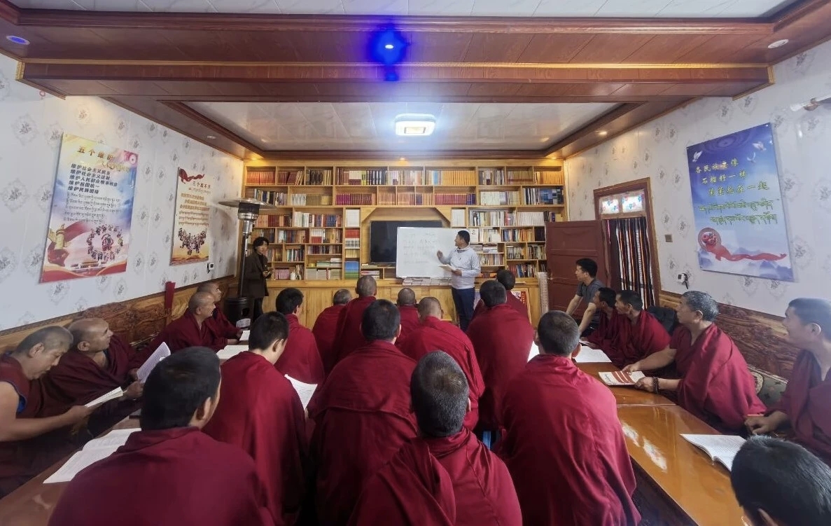 推进“三大行动”,筑牢风险防控“安全线”。坚守底线思维,全力维护地区稳定。一是开展隐患清源行动。联合综治、公安等部门对两寺僧舍开展2轮排查,清除反宣物品,排查消防隐患,加强重点区域监测。二是实施政策润心行动。结合“八五”普法,开展各类政策法规宣传,发放藏汉双语材料千余份,提升僧众国家意识和法治观念。三是落实未保“护苗”行动。严格执行“控辍保学”政策,开展7次未成年人入寺排查,确保两寺无义务教育阶段辍学入寺现象,切实保障未成年人受教育权利。