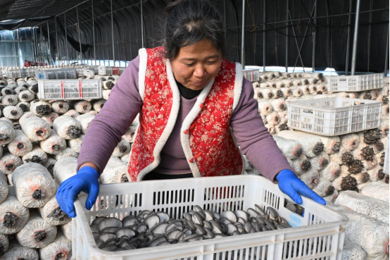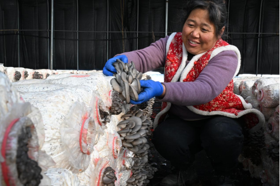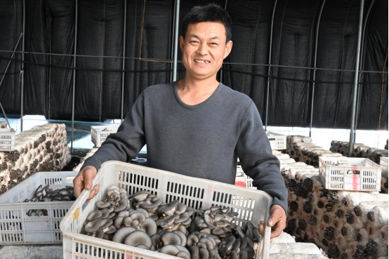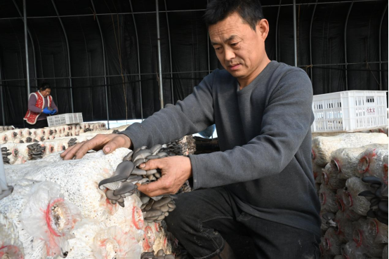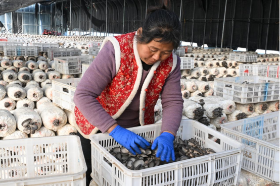 本网青岛讯 (通讯员 张涛 翟晓月)12月19日,冬日暖阳下,记者走进山东省青岛市即墨区移风店镇小欧村农民王丰宇蘑菇种植大棚内,一股股清新的菌香扑鼻而来。一排排菌包摆放得整整齐齐,一簇簇水灵灵的平菇破袋而出,鲜嫩饱满、长势喜人,鲜嫩诱人,棚中散发着阵阵蘑菇的清香。农民们正忙着对蘑菇进行管护、采摘,一幅农村冬日丰收画卷徐徐展开。