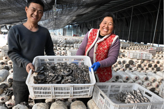 “你看这个菇的品相多好。现在蘑菇是今年的第一茬,已进入采摘旺季,每天可采600多斤。”在蘑菇大棚内,王丰宇在一袋菌棒旁,捧着一簇刚采好的蘑菇爱不释手。种植户王丰宇穿梭于大棚间,他正拿着箩筐穿梭在正忙碌地采摘成熟的蘑菇。只见他娴熟地用手掐住菇根,轻轻一扭,整朵平菇轻松入筐,不一会儿,箩筐里就装满了新鲜的蘑菇。王丰宇一边采摘蘑菇一边高兴地说。记者看到,大棚内袋袋菌棒整齐排列,朵朵蘑菇饱满“绽放”,采摘、搬运、分拣、包装,每一项工作都井然有序,现场一幅丰收的喜悦景象。 移风店镇小欧村农民王丰宇(左)在大棚里搬运采摘的蘑菇 大棚里一朵朵鲜嫩肥硕的平菇如灰色“小伞”从菌棒中探出头来,它们相互依偎,又各自舒展,菌盖层层叠叠,如盛开的花朵,又似天边的云朵,在小小空间里演绎着生命的活力。平菇表面细腻光滑,色泽柔和,浅灰色如薄雾笼罩的天空,灰白色像冬日初降的薄雪,泛着一层若有若无的微光。大棚内,村民们穿梭其间,熟练地采摘、称重、装筐,丰收的喜悦溢满脸庞。记者看到,大棚内袋袋菌棒整齐排列,朵朵蘑菇饱满“绽放”,采摘、搬运、分拣、包装,每一项工作都井然有序。 农民在移风店镇小欧村大棚采摘蘑菇 今年45岁的王丰宇种植蘑菇已有20多年时间,起初跟随父母种植蘑菇时,规模较小。“我就是自小在种植蘑菇大棚里长大的,对食用菌种植有着深厚感情。”刚开始种植,由于技术等方面掌握的不精,蘑菇的产量很低。如今,他不仅对种植技术了如指掌,还拥有稳定的销售渠道。 移风店镇小欧村农民王丰宇展示刚采摘的蘑菇 王丰玉20多年的蘑菇种植的经验,是他成为当地在食用菌领域有名的“技术土专家”。他种植的蘑菇,因为新鲜口感好,走俏当地市场,成为了广大消费者的抢手货。这几年通过精细化种植蘑菇,他家大棚蘑菇的产量也越来越高,收入也一年比一年高,种植的蘑菇深受消费者青睐。王丰宇笑呵呵地说:“我今年种了6个大棚蘑菇,一棚纯收入20来万块钱,效益挺高的。” 农民将采摘的蘑菇装箱,供应市场 据王丰宇介绍,他栽培蘑菇的原料用的是秋收后别人不用的玉米芯。选用棉籽壳、木屑、玉米芯、麦麸、豆粕等做基质,并改变原先使用发酵料制作菌棒的模式,使用熟料,不仅接种成功率高、固型好,也提升了蘑菇的口感。“玉米芯经过粉碎后添加水和辅料,发酵后进行塑料袋栽培,不需特殊管理,40天即可进入采摘期,从12月开始到来年5月份可连续采摘3茬,一个棚3茬可采摘7万多斤。”王丰宇说。 移风店镇小欧村农民王丰宇在蘑菇大棚里观察蘑菇生长情况 “我的蘑菇主要以批发为主,采收后就送到批发市场,也有客户上门来收,一般的批发价3--4元一斤。近几年蘑菇价格比较稳定,整体效益不错。”采用专业的种植技术和科学的管理方法,是确保平菇产量和品质的重中之重。 “蘑菇种植是个细活,需要合适的温度、湿度、光照,要像照顾孩子似的细心照料。这几年,我们种植的蘑菇,产量与品质越来越高了,目前,6个大棚的平菇都已大量上市,一天可采摘600----700斤左右,采摘之后的平菇,第二天凌晨两点就送往附近的青岛市城阳区农贸市场批发售卖,虽然辛苦了点,但收入也一年比一年好。”王丰宇告诉记者。 “这几天温度适宜,菌棒的出菇量非常大,我们正加紧采摘,能让市民买到新鲜的平菇。”王丰宇一边介绍,一边穿梭在大棚里检查平菇的长势,并不时地嘱咐村民们要开窗通风或是洒水增湿,随时调节大棚的温度和湿度。他说:“菌包喜冷怕热,调节好温度湿度对平菇的长势非常关键。” “临近元旦、春节,蘑菇供不应求,这几天也是我们最忙的时候,虽然很累,但很开心。”王丰宇说。今天采摘的是第一茬,一个大棚预计三茬可采蘑菇7万多斤,每年这一个棚的蘑菇可给我带来20万多元的收入。” “目前上市的蘑菇品种主要是平菇,这个品种口感鲜美、营养丰富,在市场上很受欢迎。”大棚内,在这里打工的多年的临村村民张淑珍介绍道:“从接种、养菌到出菇,每个环节都有王老板请来的专业技术人员指导,产量相比传统种植方式有所提高。” 近年来,山东省青岛市即墨区将绿色产业发展与助农增收结合起来,推广“公司+基地+农户”的运营模式,大力发展大棚蘑菇产业,为当地群众拓宽增收渠道。该产业不仅促进了种植户增收,也带动了当地村民就近就业。 一朵朵肥硕可人的蘑菇,也承载着种植户丰收的希望。王丰宇不仅自己靠着蘑菇种植过上了好日子,还常年为附近村民提供劳动岗位,特别是一些在家无法外出务工的劳动力。邻村的张淑珍在王丰宇的蘑菇大棚里做着原料装包、蘑菇采摘等工作,一个月能挣3000多块钱。“活不算累,挣钱不少,挺好的。”张淑珍笑眯眯地说道。“在家门口的蘑菇大棚务工,不仅能挣钱,还能照顾家庭,真是一举两得。” 王丰宇是一位从蘑菇大棚里“种出来”的技术指导“土”专家,带动当地群众共同致富,撑起了乡村振兴“致富伞”。一朵朵蘑菇,一头连着“菜篮子”,一头鼓着“钱袋子”。小蘑菇,大收入。 王丰宇种植的优质的蘑菇不仅拓宽了销售路子,还增加了她的收入,日子越过越有底气。他昼夜劳作,只为将蘑菇独特的美味端上世人餐桌。提起蘑菇种植,王丰宇便滔滔不绝,从菌棒制作到如何浇水护理,从中期管护到何时采摘,他都了如指掌,对于未来的生活,他更是满