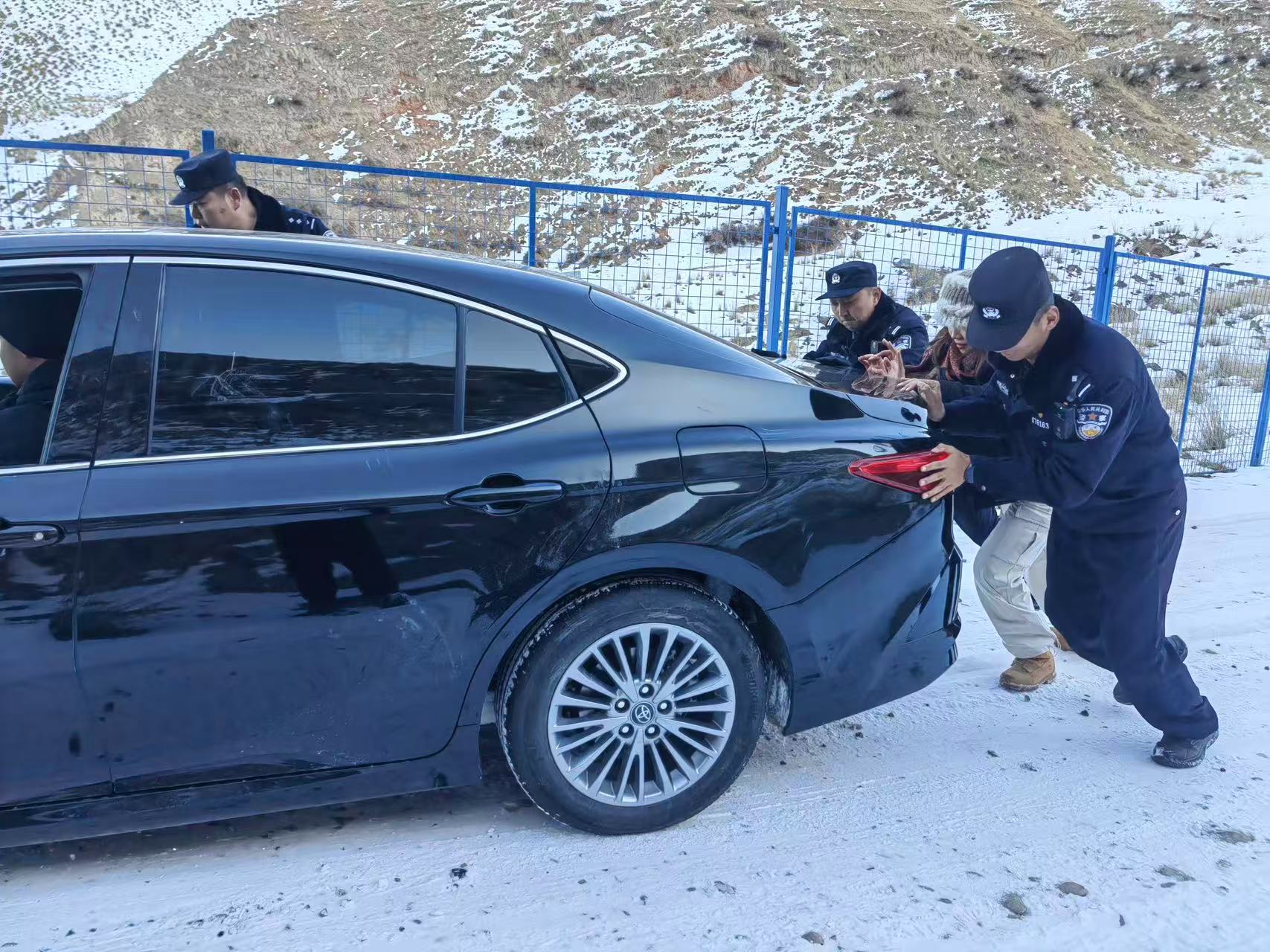 寄信人是广东游客欧女士。12月26日,广东籍游客欧女士来到张掖市肃南裕固族自治县马蹄景区自驾进行观光游玩。当天下午,他们前往金塔寺石窟群,看到前方路段是厚厚的积雪,便掉转车头准备原路返回。谁知,半路上开错了道,进入了一条人迹稀少的山路。但顺着山路盘旋而上后,慢慢地越来越不好开,而且越往前积雪越厚,更糟糕的是汽车轮胎打滑,深深陷在雪地里无法继续行驶。两人被困在这前不着村、后不着店的大山中,冻得瑟瑟发抖。危急中欧女士赶紧拿出手机拨打110求救。