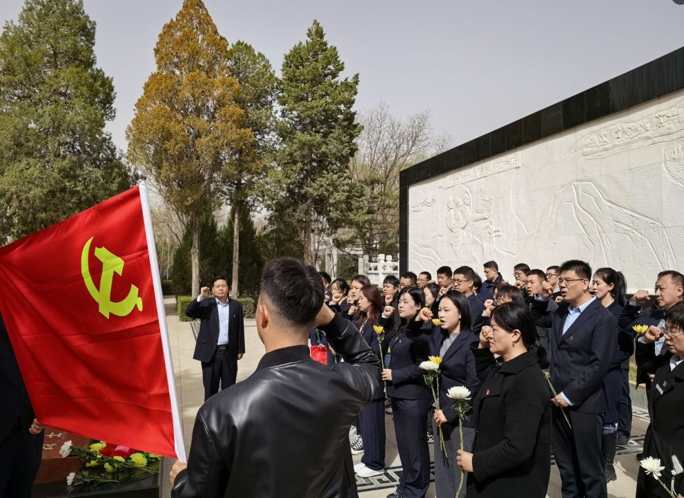 全体党员肃立纪念碑前,敬献花篮、垂首默哀。每一朵白菊,都诉说着对“为谁而死”的追问;每一次鞠躬,都是对“为何而活”的回答。从革命年代的枪林弹雨到和平时期的默默奉献,英烈们用生命标注了共产党人的信仰高度。