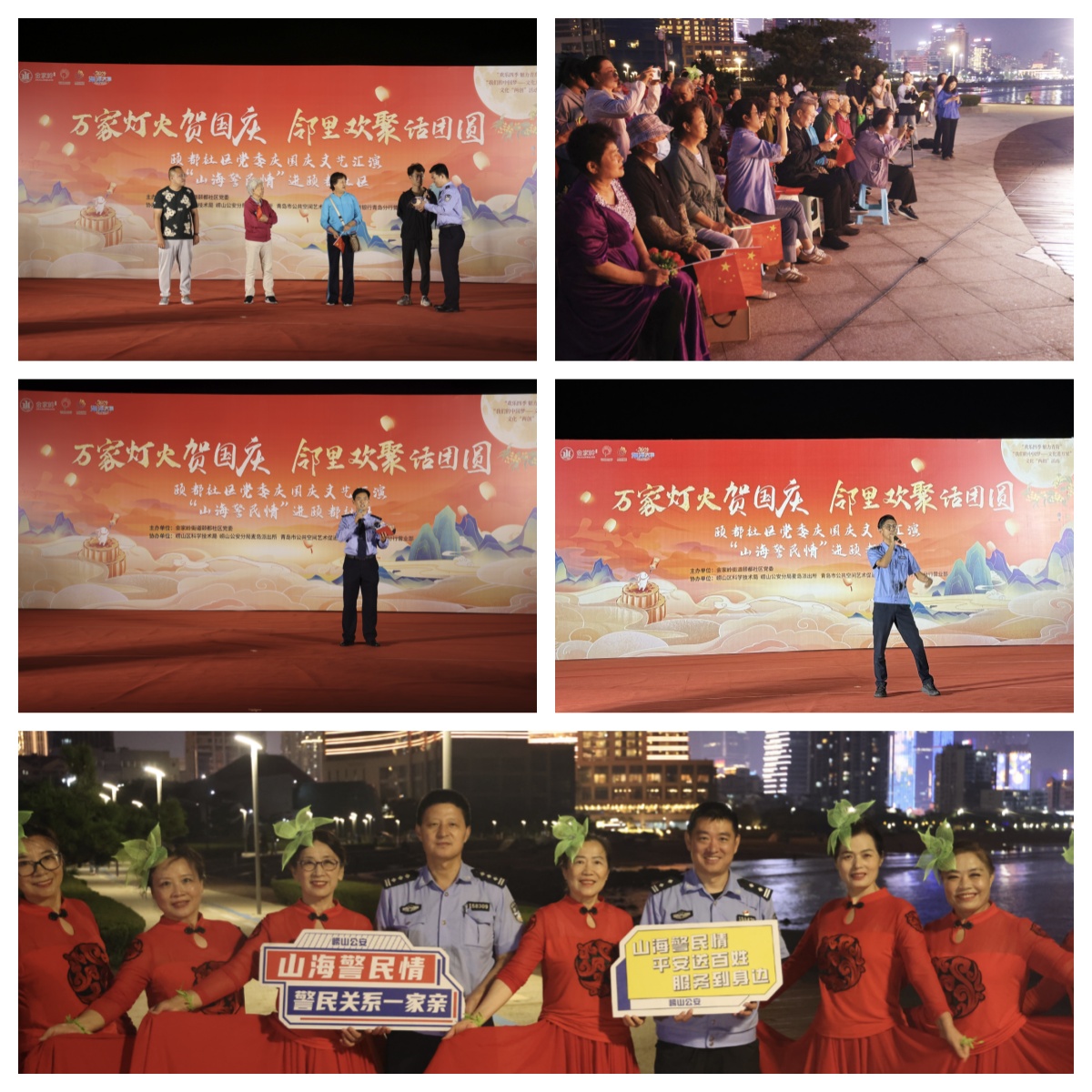 本网青岛讯 (通讯员 马青青)为庆祝中华人民共和国成立76周年,为营造欢乐祥和的节日氛围,进一步推动平安社区建设,9月28日晚,在金家岭街道颐都社区举办了“万家灯火贺国庆 邻里欢聚话团圆”暨“山海警民情”品牌巡演活动,崂山公安“山海警民情”团队受邀参加活动,为活动注入了鲜明的公安特色与平安内涵。