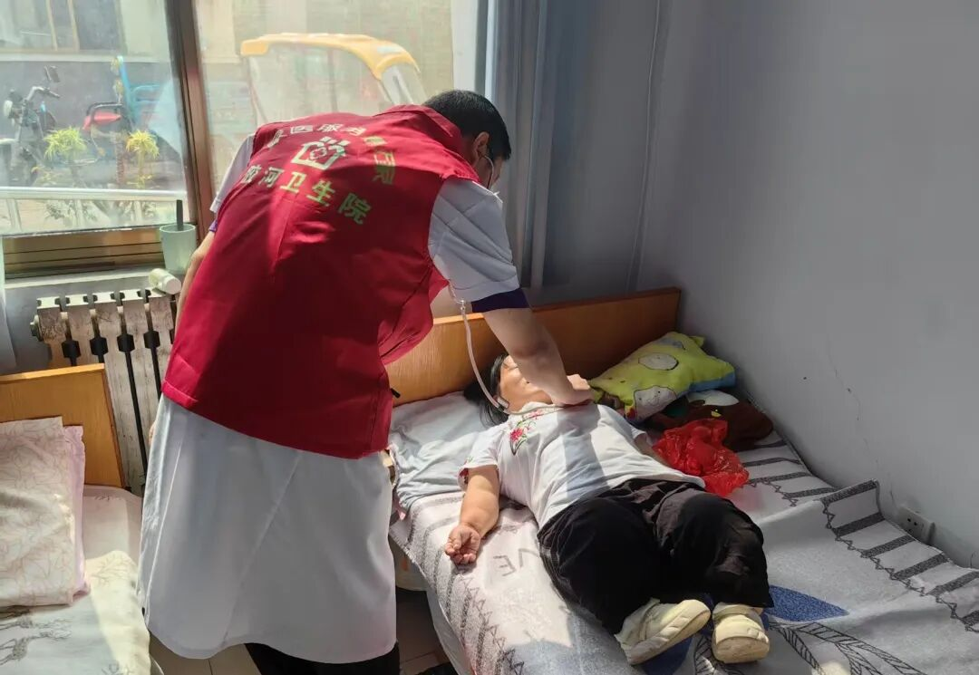 活动中,青岛市黄岛区胶河卫生院的医务人员为老人测量血压、检测血糖,详细询问他们的身体状况和日常饮食情况,让安养中心的老人们感受到了节日的温暖。