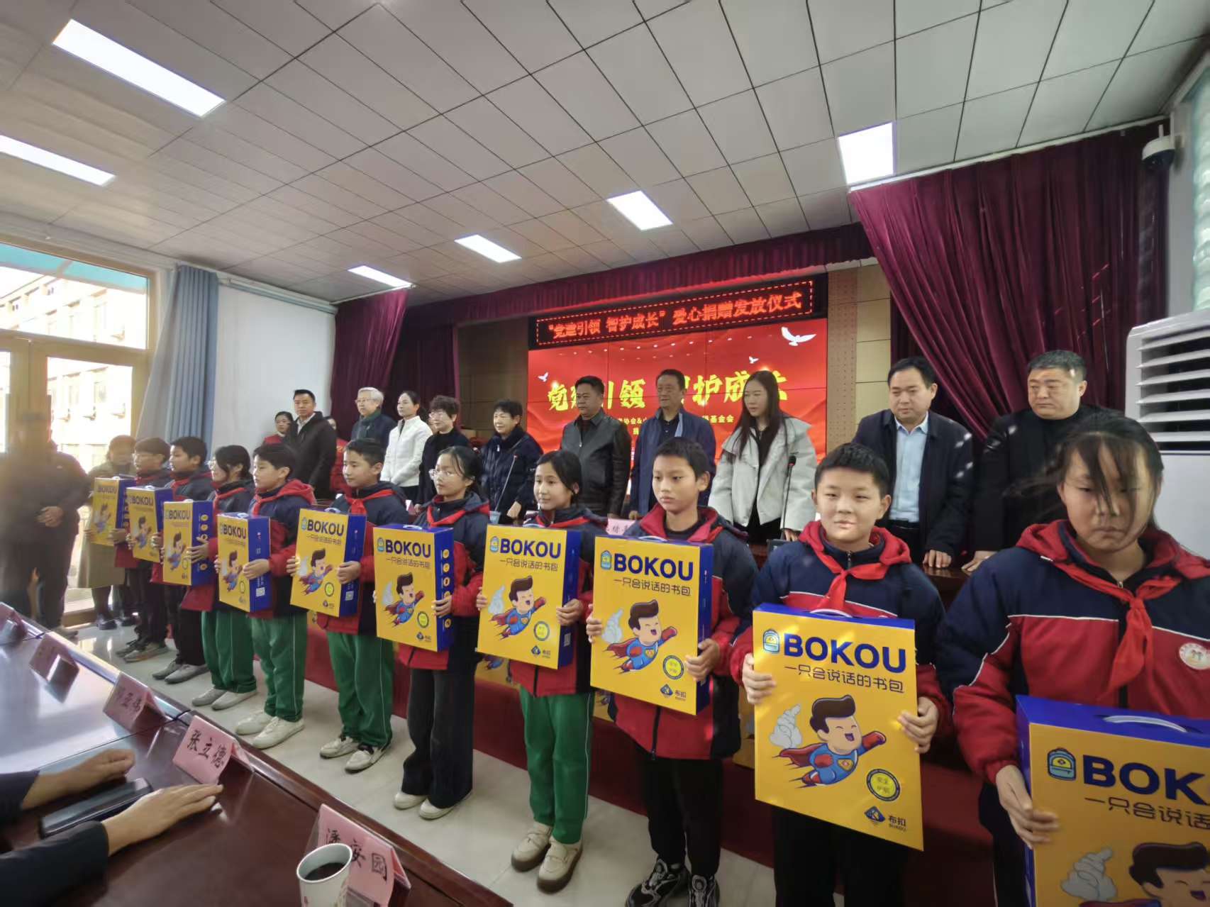 菏泽返乡创业(青岛)服务站副站长孙果林在致辞中深情讲述了服务站的使命与担当。他提到,服务站始终不渝地致力于构筑在青菏泽籍企业家与家乡之间的沟通纽带,积极引领企业家回馈桑梓、反哺社会。他表示,此次捐赠不仅为孩子们送去了物质上的援助,更如一把金钥匙,开启了他们通往浩瀚知识殿堂的大门。“我们期望通过‘党建 + 科技 + 公益’这一创新模式,为孩子们注入成长的动力,用科技的力量守护他们的成长之路,这也正是‘智护成长’的深刻内涵。”孙果林满怀期待地说道。