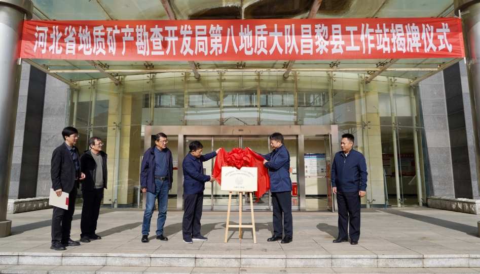 近日,河北省地质矿产勘查开发局第八地质大队昌黎县工作站揭牌落地。昌黎县自然资源与规划局党组书记、局长刘洪波,副局长王明毅,副局长史学锋,地质八队队长郭连军,党委书记张雄伟参加了揭牌仪式。