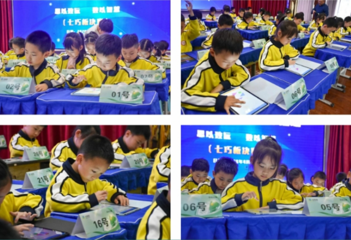 比赛现场,孩子们眼神专注,手指轻点平板,灵活移动七巧板,将一块块形状各异的板块巧妙组合。一幅幅创意作品飞快呈现,有活泼可爱的小动物,有形态各异的建筑物,还有栩栩如生的人物形象。每一幅作品都凝聚着孩子们的智慧与想象力,展现出他们对数学图形的独特理解。
