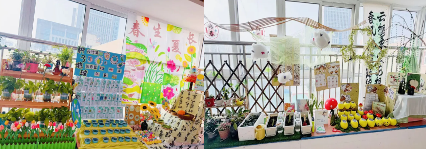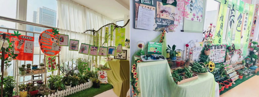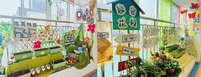 中一班循着古诗春意,土培水培植物竞相生长,让自然与课程深度融合;